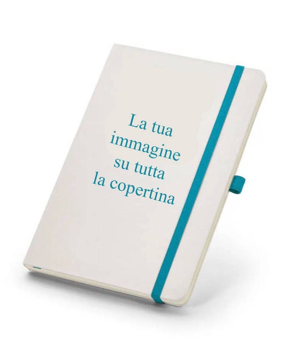 Diario di viaggio con copertina rigida personalizzata con elastico, stampa su tela su tutta la copertina e non come tutti gli altri solo il logo.